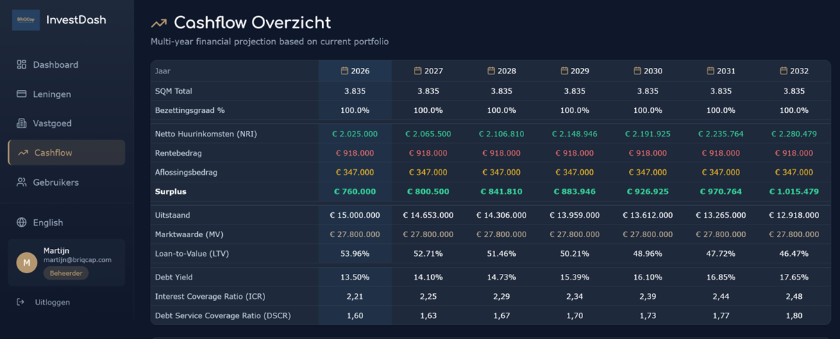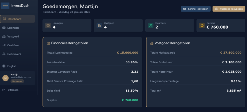- FAAS-portaal BRiQCap heeft zijn eigen vastgoed financieringsportaal waarin jij als vastgoedbelegger inzicht hebt in je financieringen, expiraties, cashflow, LtV, ICR, DSCR.